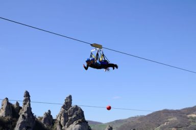 Die Nepalese Bridge der Lukanischen Dolomiten verbindet die beiden Ausgangspunkte der Via Ferrate Salemm (Castelmezzano) und Marcirosa (Pietrapertosa) und kann erreicht werden, indem man den Antro delle Streghe oder die Hochebene, die entlang des Caperrino-Baches verläuft, das Zentrum der 7-Steine-Route, passiert.